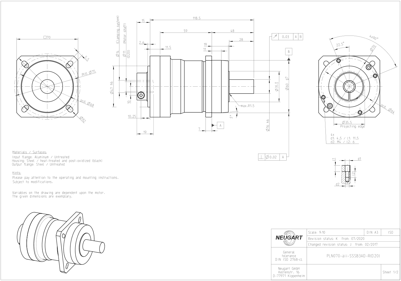 Example of basic dimension drawing of some models of PLN planetary gearbox: