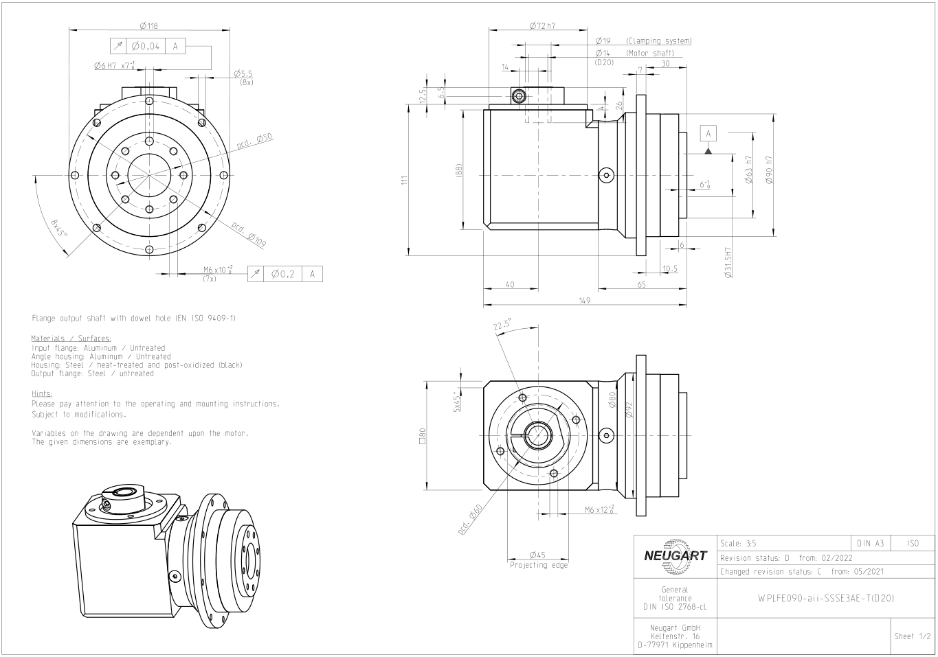 Example of internal dimension drawing of WPLFE planetary gearbox: